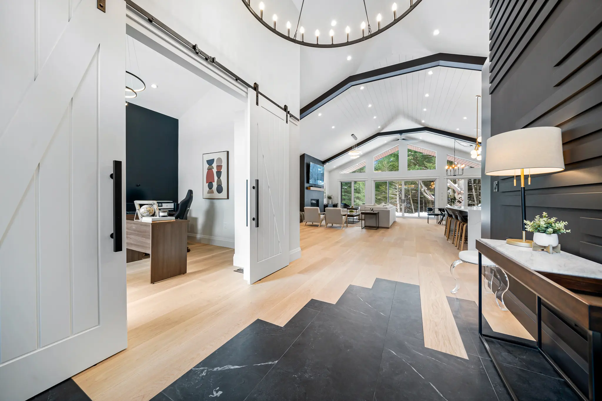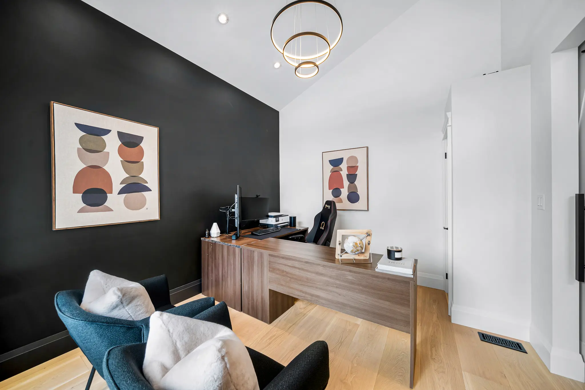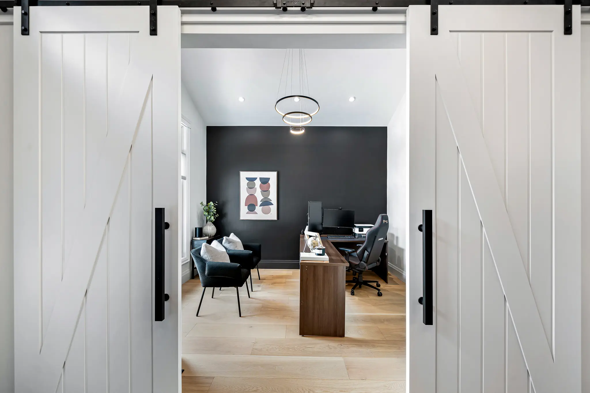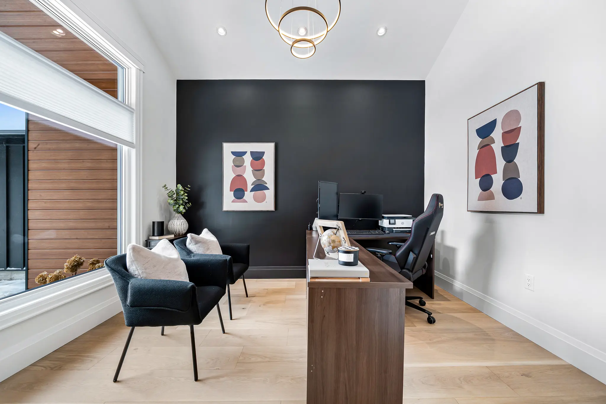This custom-built home with high-end finishes was staged to highlight its quality and spacious layout. Madison Lane Designs blended rental furnishings with the homeowner’s own pieces and select family heirlooms. The result was a beautifully balanced presentation that elevated the property without overwhelming it, helping prospective buyers envision themselves in the space.